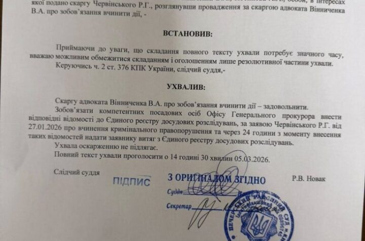 Печерський районний суд Києва зобовʼязав Офіс Генерального прокурора розпочати досудове розслідування за заявою Романа Червінського щодо народної депутатки Мар’яни Безуглої....