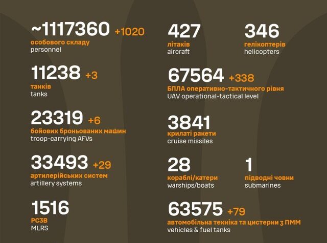 Мінус ППО та понад тисячу окупантів: Генштаб оновив дані про військові втрати РФ