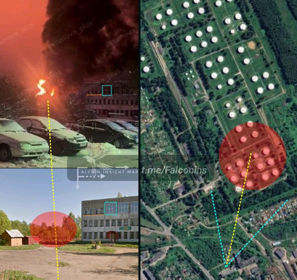 Місцеві служби намагаються ліквідувати наслідки пожежі та оцінити масштаби ушкоджень на складі пального. Обставини інциденту та можливі причини атаки поки уточнюються.