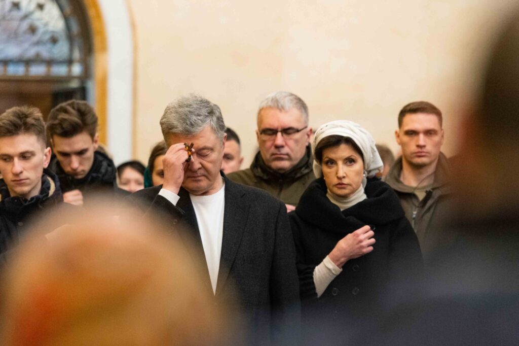 На літургію в Успенському соборі лаври прийшов п’ятий президент України Петро Порошенко разом з дружиною Мариною.