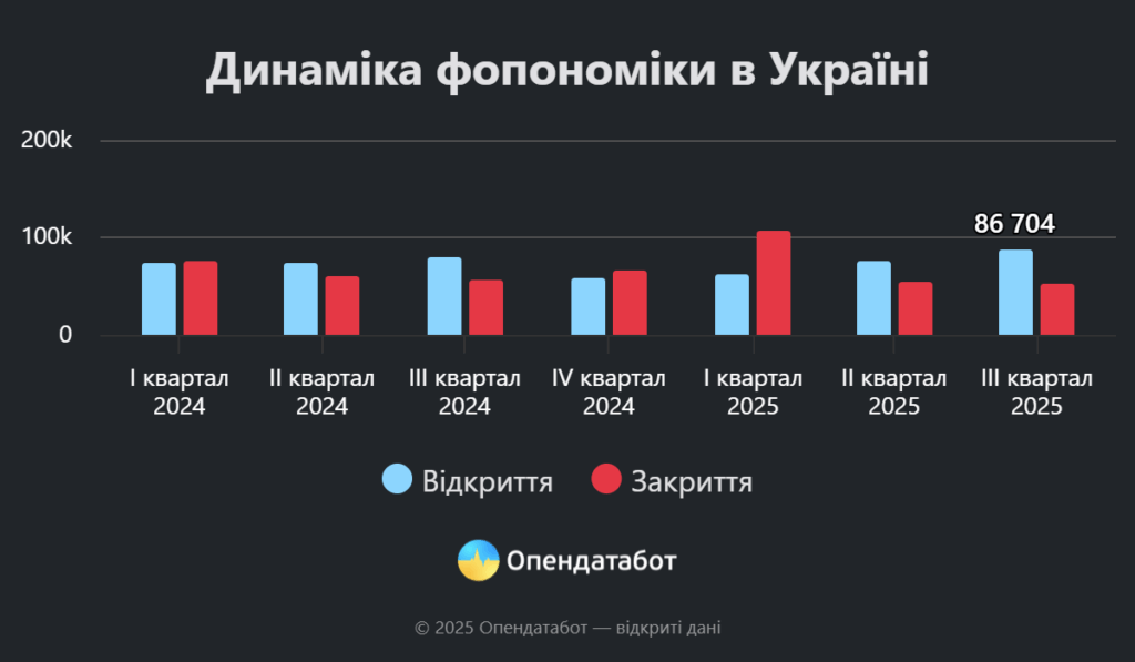 Такий баланс нових і закритих підприємств дозволив ФОПономіці України вийти в плюс у третьому кварталі 2025 року, демонструючи стабільність і зростання малого бізнесу навіть за умов економічних коливань.