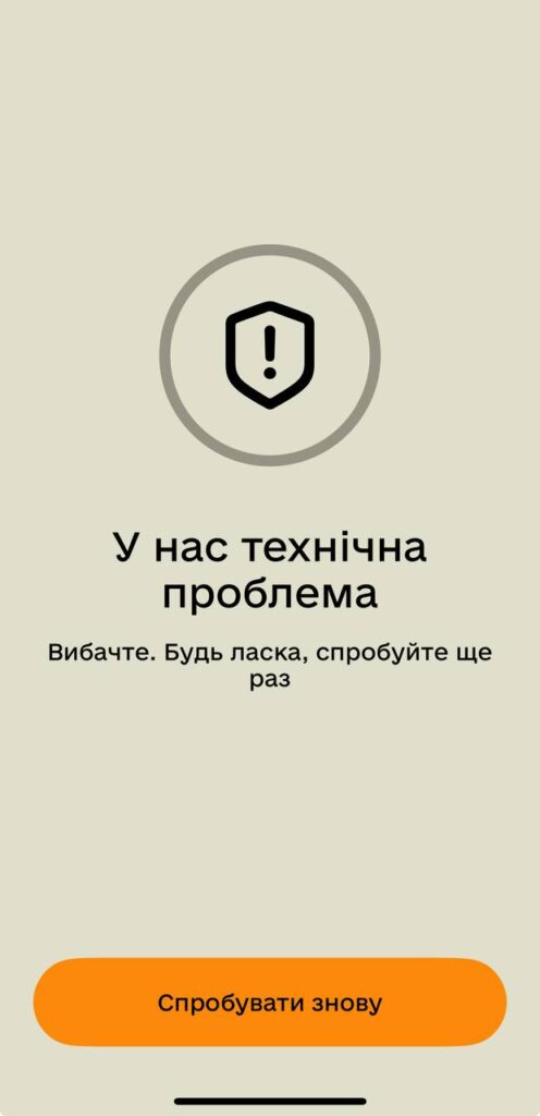 На екрані демонструються написи “Система дуже навантажена. Потрібно почекати більше ніж зазвичай. Дуже дякуємо за терпіння”, “Сталося щось дивне” та “У нас технічна проблема”.