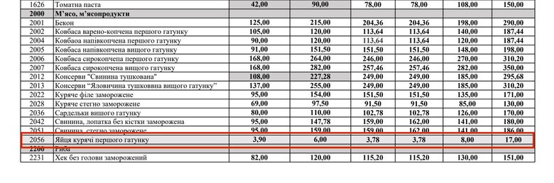 На скріні – ціна на яйця з цих документів. Тут свіжий пост голови антикоркомітету ВРУ на цю тему.