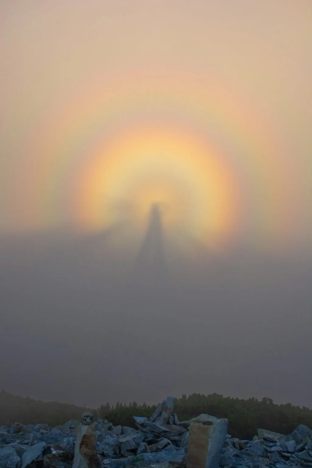 “Брокенський привид” – це рідкісне оптичне явище, що виникає в горах, коли людина бачить власну тінь, відбиту на хмарах або тумані в напрямку, протилежному Сонцю. Часто тінь оточена райдужними кільцями – так званою глорією. Саме завдяки цьому ефекту явище здається містичним, хоча насправді воно пояснюється законами фізики.