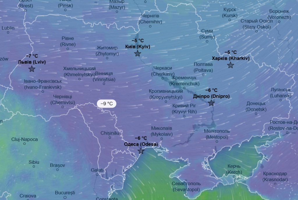 Нагадаємо, в Україну надійшло сухе й холодне повітря з акваторії Баренцевого моря, а вже 25 грудня очікується подальше зниження температури та пік першої хвилі морозів.