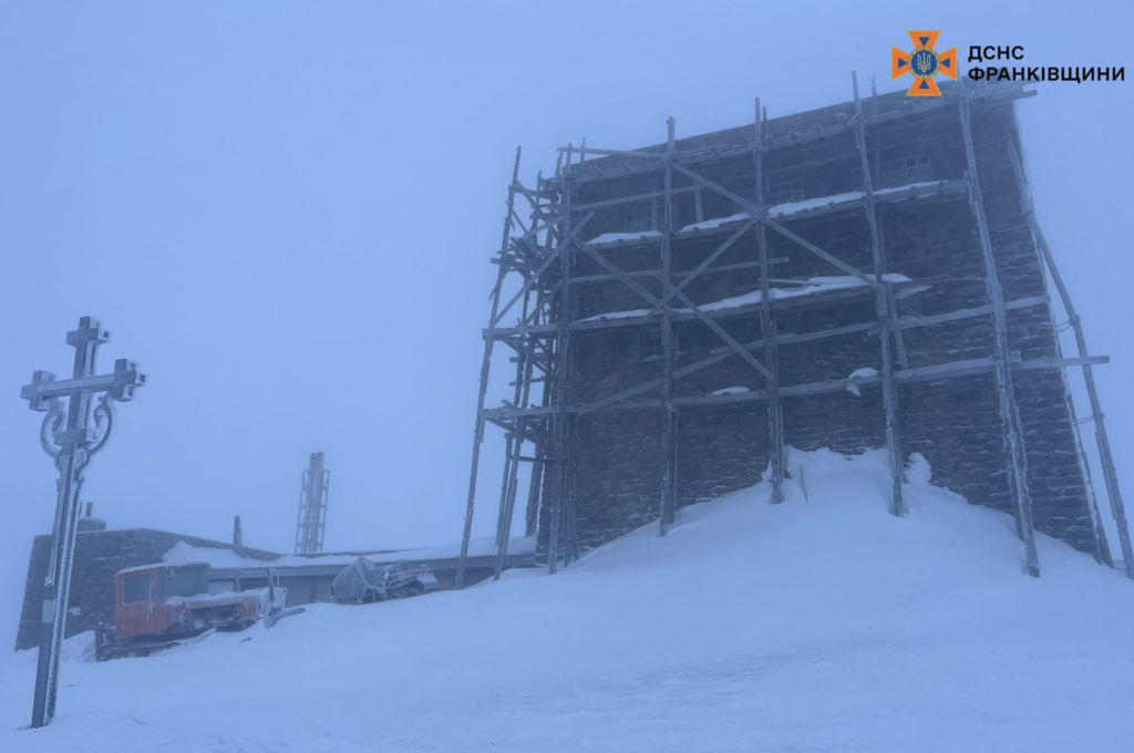 Вранці 24 січня на горі Піп Іван Чорногірський у Карпатах спостерігається хмарна погода та обмежена видимість, а висота снігових переметів місцями сягає 150–160 см.