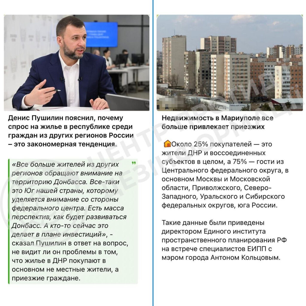 Пушилін назвав масове скуповування житла громадянами РФ на тимчасово окупованій Донеччині “закономірною тенденцією”.