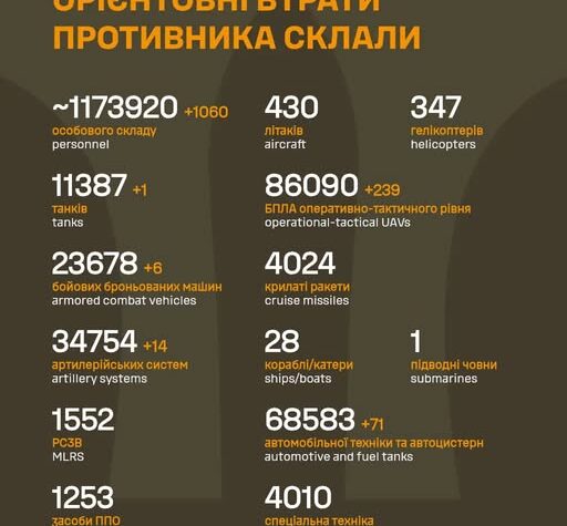 У Генеральному штабі ЗСУ оновили дані щодо втрат армії РФ у війні проти України, так за добу 30 листопада українські...
