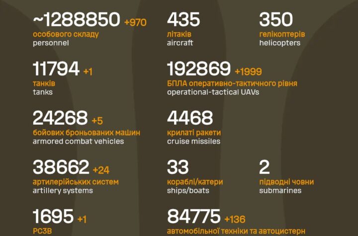Протягом минулої доби на фронті зафіксовано 117 бойових зіткнень, російські війська завдали ракетного та масованих авіаційних ударів, застосували тисячі дронів-камікадзе...