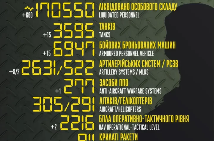 Впродовж доби 25 березня Росія втратила в Україні 660 військових, 15 танків, 15 бронемашин, 8 артсистем, 2 БПЛА та засіб...