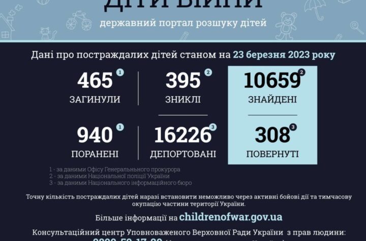 Російські війська вбили в Україні 465 дітей та ще 940 дітям завдали поранень. Про це Офіс генерального прокурора повідомляє у...