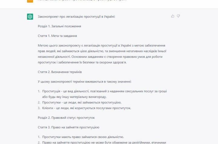 Міністр юстиції Денис Малюська звернувся до чат-боту ChatGPT, який вже є доступним в Україні, з проханням розробити законопроект про легалізацію...