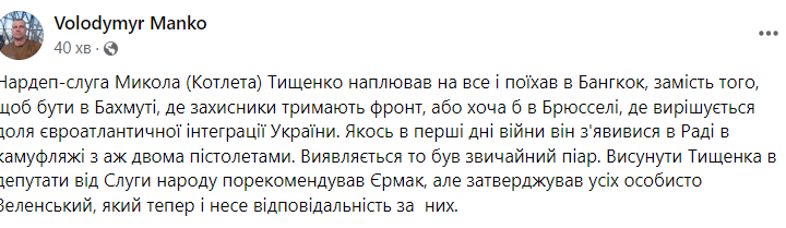 Народний депутат від “Слуги народу” Микола Тищенко перетнув кордон із Польщею позавчора, 24 січня, а далі рейсом Мюнхен-Бангкок прилетів у...
