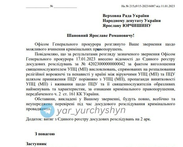Офіс генерального прокурора відкрив кримінальну справу проти митрополита Павла з УПЦ (МП). Про це повідомив народний депутат України від “Голосу” Ярослав...