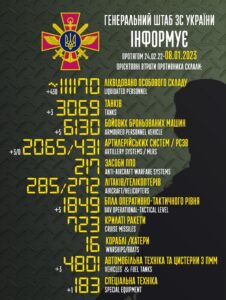 У Генеральному штабі ЗСУ оновили втрати армії РФ у війні проти України, так за добу 7 січня було знищено 430...