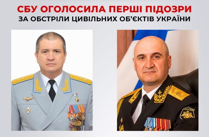 Служба безпеки України оголосила перші підозри за обстріли цивільних об’єктів України, зібрано докази на російського генерала та адмірала флоту РФ....