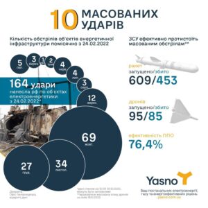 За даними компанії-постачальника електроенергії YASNO, з 24 лютого окупанти випустили по енергетичній інфраструктурі України 609 ракет та 95 БПЛА, проте...