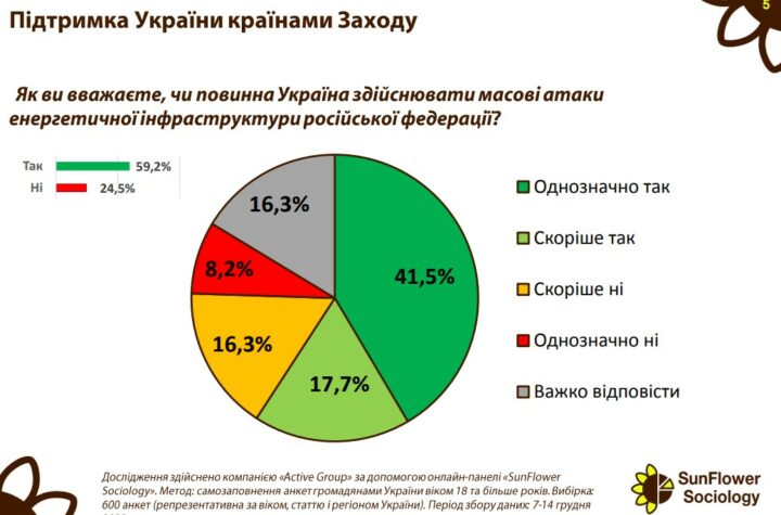 Майже 60% українців вважають, що Україна повинна здійснювати масові атаки енергетичної інфраструктури російської федерації. Такі результати соціологічного дослідження, проведеного компанією...