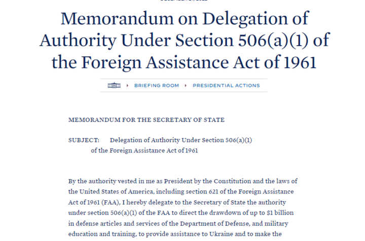 Президент США Джо Байден у середу підписав меморандум про виділення до одного мільярда доларів, які мають бути скеровані на надання...