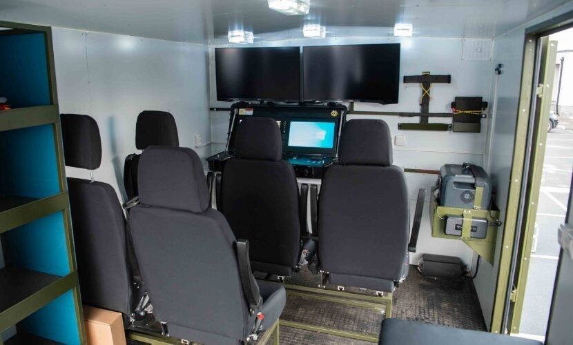 «Хочу продемонструвати – тут знаходиться пульт управління для чотирьох представників. Отут розташований пілот, в абсолютно надійних і захищених умовах. Тут розташований оператор. Тут розташований артилерист. І тут розташований розвідник. Все це об’єднано в одній точці. Тут стоїть Старлінк, і командир бригади або генеральний штаб може бачити очами оператора і пілота події, що там відбувається. І артилерист має бачити те саме, що бачить оператор», – розповідає Петро Порошенко.