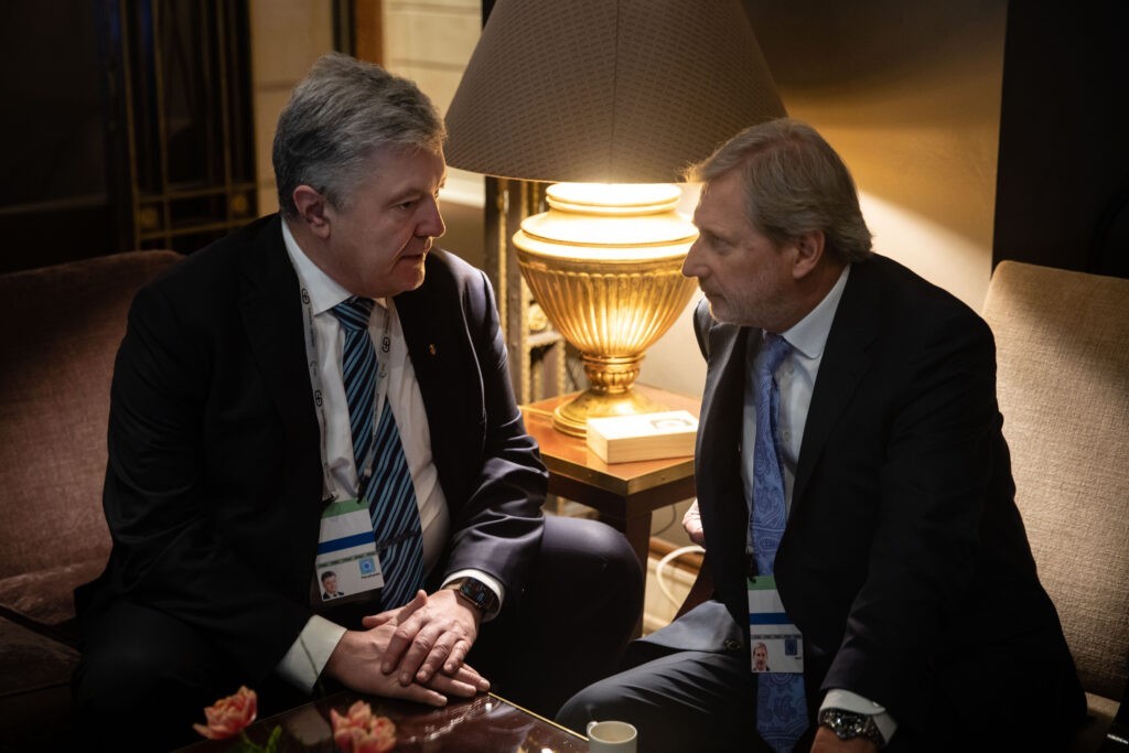 П’ятий Президент Петро Порошенко на полях Мюнхенської конференції з безпеки обговорив з Єврокомісаром з питань європейської політики сусідства та перемовин із розширення Йоханнесом Ганом питання вступу України до ЄС та посилення санкційної політики проти росії. Про це Порошенко повідомив у Facebook.
