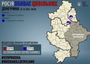 Також, Кириленко повідомив, що за 21 грудня росіяни поранили 3 мирних жителів Донеччини: 2 у Торецьку та 1 у Бахмуті.
