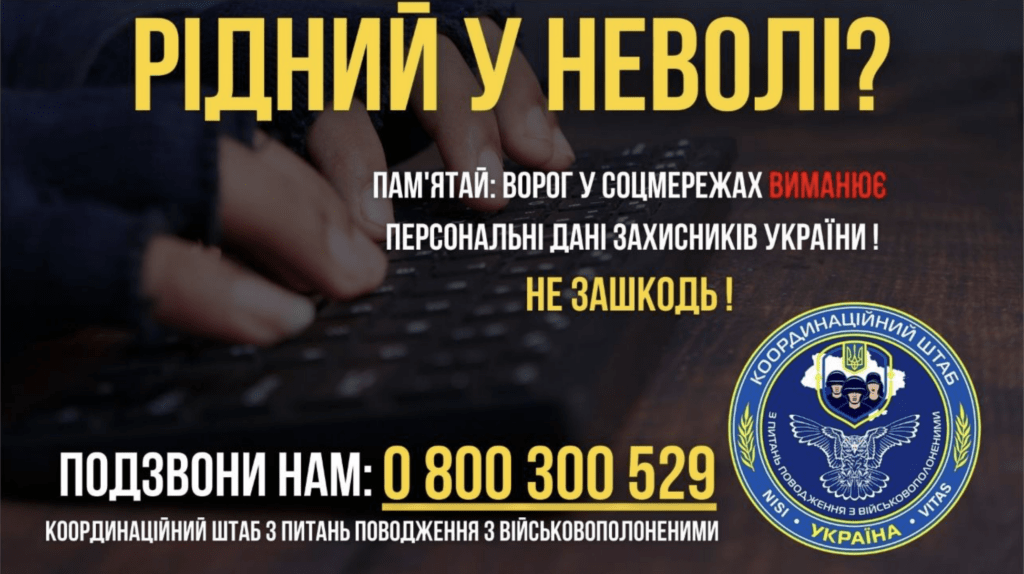 “Координаційний штаб вкотре звертає увагу родин полонених та зниклих українських бійців: не поширюйте персональні дані оборонців, не повідомляйте їх стороннім! Персональну інформацію про ваших рідних військовослужбовців можна повідомляти лише уповноваженим особам. Деталі можна дізнатися у нашій “Дорожній карті”, — йдеться в повідомленні.