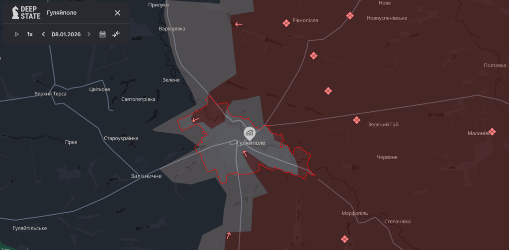 “Ворог просунувся у Гуляйполі (Пологівський район, Запорізька область) та Приморському (Василівський район, Запорізька область), уточнено лінію ситуацію поблизу Філії (Синельниківський район, Дніпропетровська область)”, — повідомили аналітики проєкту DeepState.
