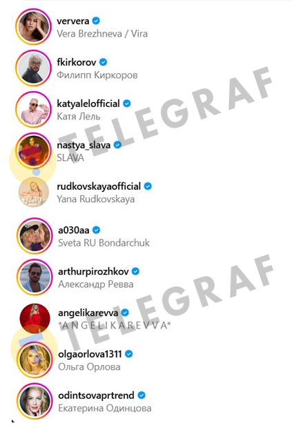 Як з’ясував “Телеграф”, у соцмережах Катерина підтримує контакти з низкою російських знаменитостей, серед яких відомі прихильники Кремля.