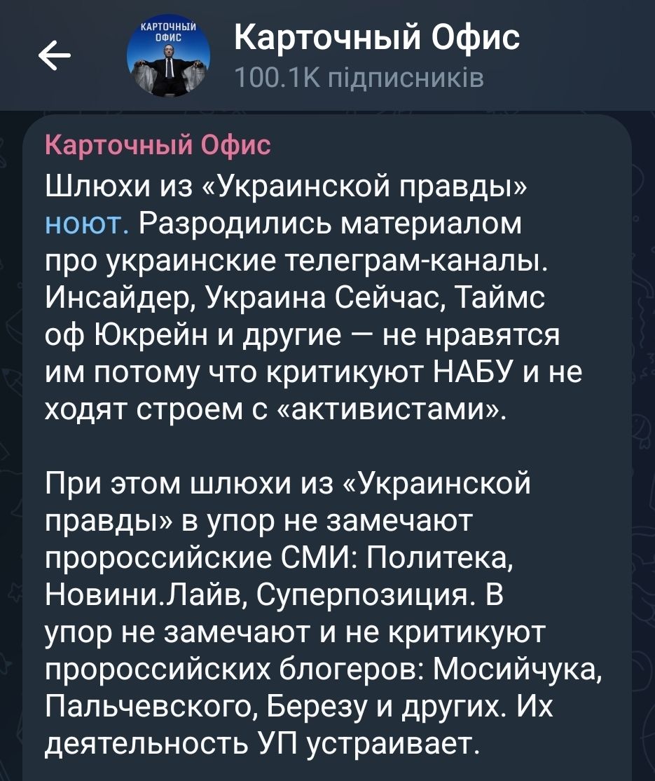 Нагадаємо, після операції “Мідас”, яка викрила масштабну корупцію в “Енергоатомі” та сколихнула владні кабінети, в українському Telegram розгорнули системну кампанію з дискредитації НАБУ і САП. Антикорупційні органи назвали операцію однією з найрезультативніших у 2025 році, але паралельно з її успіхами зʼявилася хвиля ідентичних дописів, що атакують слідчих і прокурорів.