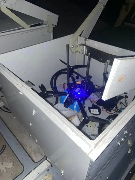 На російських кадрах, зроблених під час ударів по Туапсе та Новоросійську, помітили морський дрон із вмонтованими оптоволоконними безпілотниками у відкидних відсіках уздовж корпусу. Це перший відомий випадок запуску таких дронів з моря.