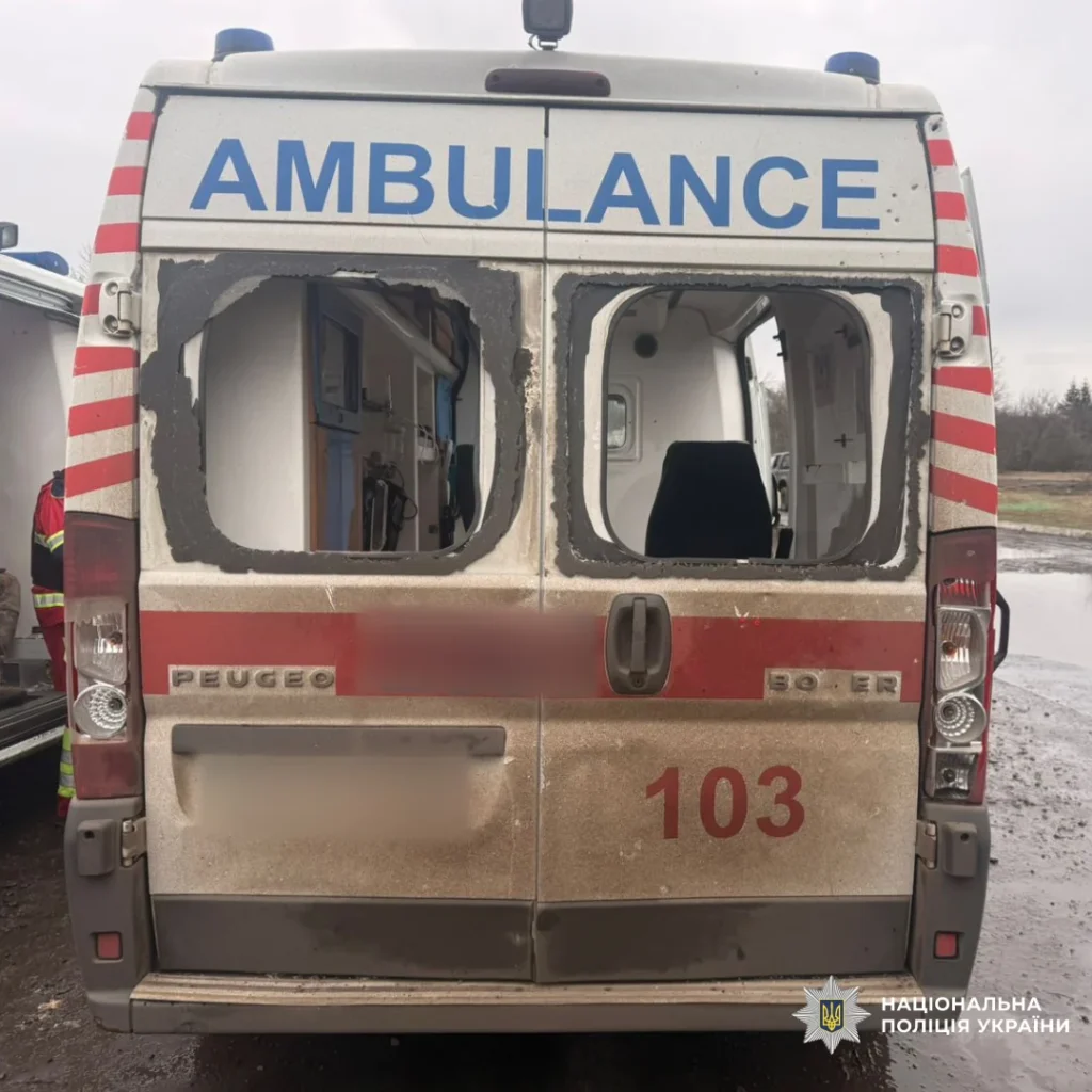 Інцидент стався у селі Грушівка Куп’янського району. Дрон вибухнув поруч із каретою швидкої допомоги під час виконання службового завдання.