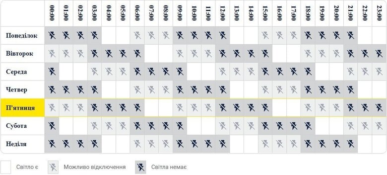• Сірий колір на графіку: в цей час гарантовано не буде світла