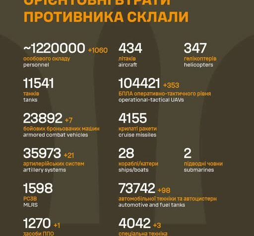 ЗСУ за добу знищили понад тисячу окупантів та 483 одинці техніки ворога