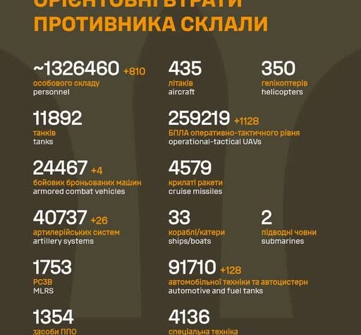 Сили оборони за добу знищили 810 окупантів та 26 артсистем росіян