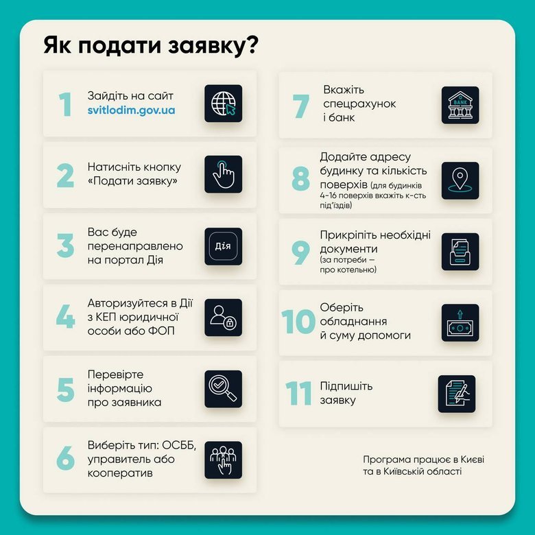 За її словами, об’єднання співвласників багатоквартирних будинків, житлові та обслуговуючі кооперативи, а також управителі будинків можуть подавати заявки через сервіс “Дія”.